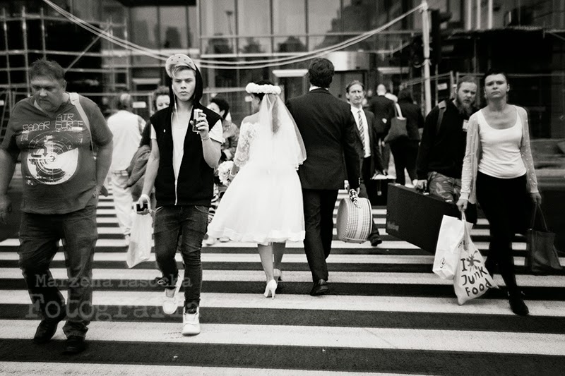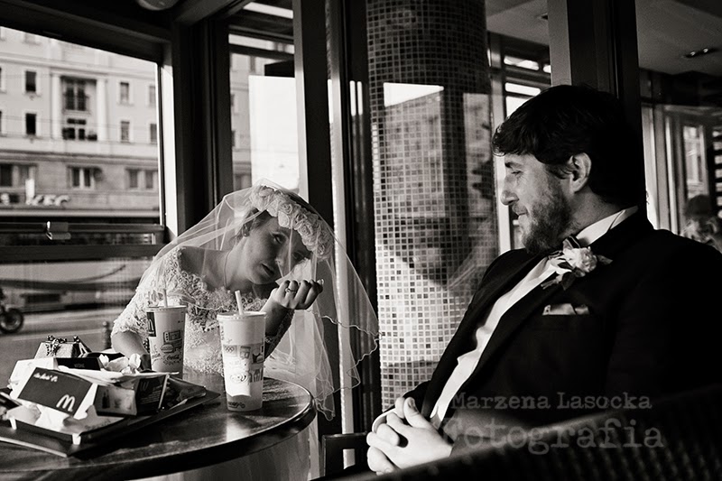 Plener ślubny może być różny. Rzekłabym - przeróżny. Możliwości jest milion, miliard, można skakać ze spadochronu, można udać się konno do źródła Sanu (ale to beze mnie, jazda konna mnie przeraża), można zaplanować szaloną wyprawę do Paryża, a można spędzić dzień w Warszawie, załatwiając rozmaite sprawy, tak oto: