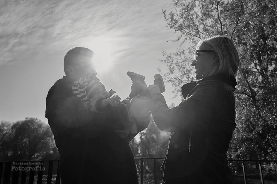 Oto dwie dziewczynki, ich rodzice i rodzice chrzestni młodszej panny, bowiem sesja zdjęciowa (warszawiacy chyba już wiedzą, gdzie się odbyła) była uwieńczeniem chrztu świętego.